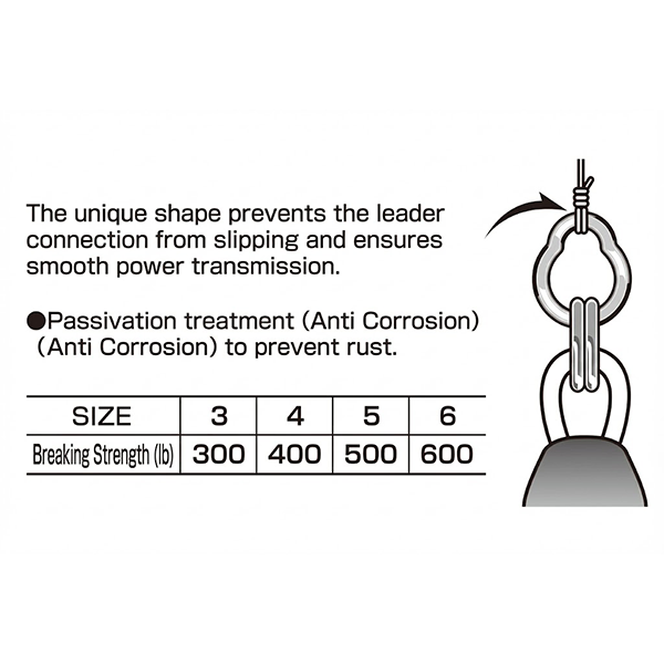 - Unique Design: The ring has a unique profile (cross-section) designed to allow the leader line and assist cords to “sit” in a stable and central manner. This prevents unnecessary slippage of the knot and reduces wear on the lines.