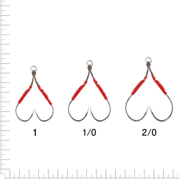 Assist Hooks set designed for fishing for Sawara / Spanish Mackerel with a jig from a boat. The product was developed to cope with the sharp teeth of the Sawara and prevent the line from being cut, a common problem when fishing for this fish.