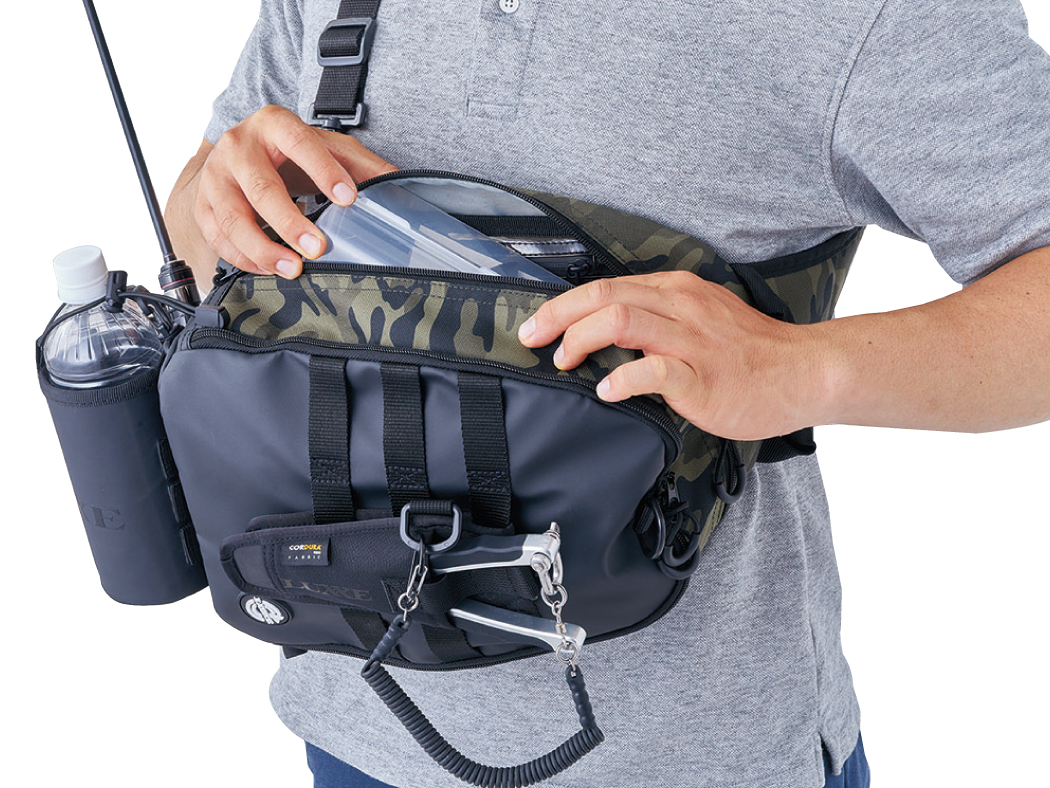 Professional fishing bag by Gamakatsu, Japan. Designed for anglers who prefer full mobility and easy access to gear while fishing. Especially suitable for shore or reef fishing.