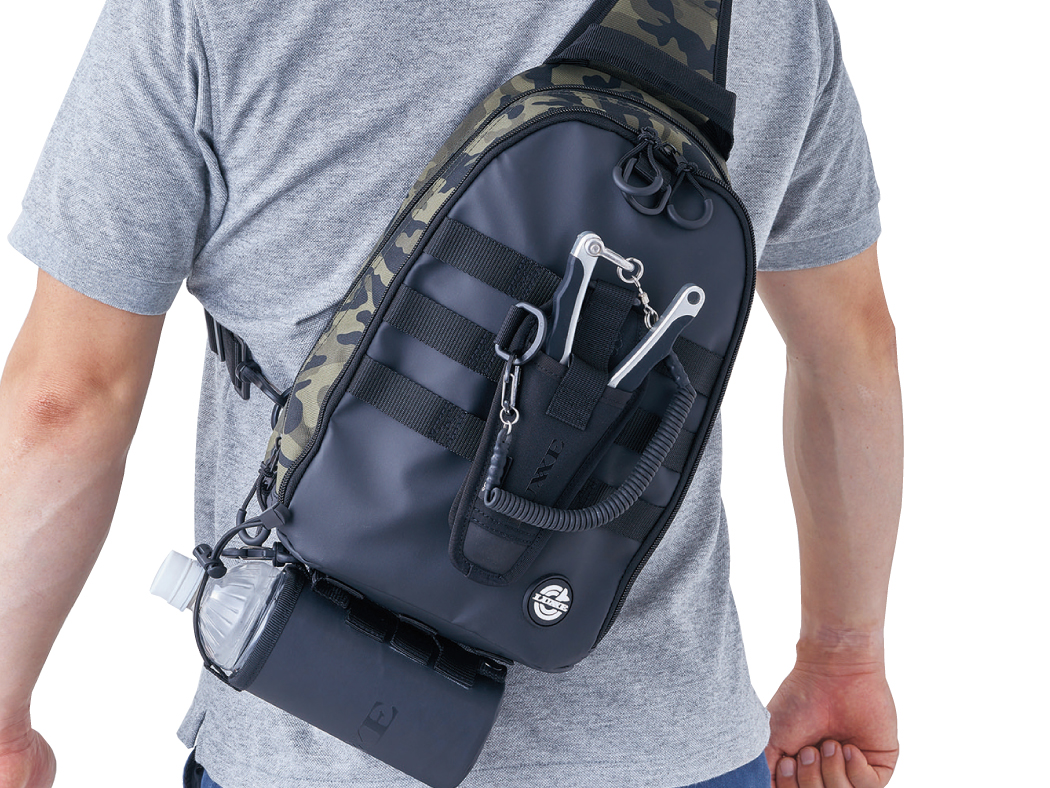 - External straps (MOLLE/Webbing) for attaching accessories like pliers, lines, or lure boxes.