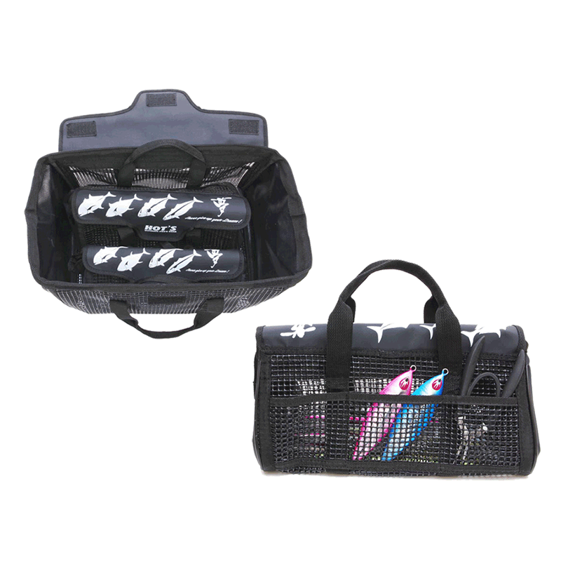 The HOTS Lure Mesh Bag is a must-have for any boat or shore angler who wants to save time and keep their gear in good condition. The concept is simple but ingenious: a bag made of durable PVC mesh that allows you to wash all your lures and jigs in fresh water immediately after fishing, without removing them from the bag!