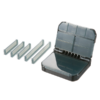 - Materials: Shock-resistant body, POM hinge. Color: Black body, clear internal lids.